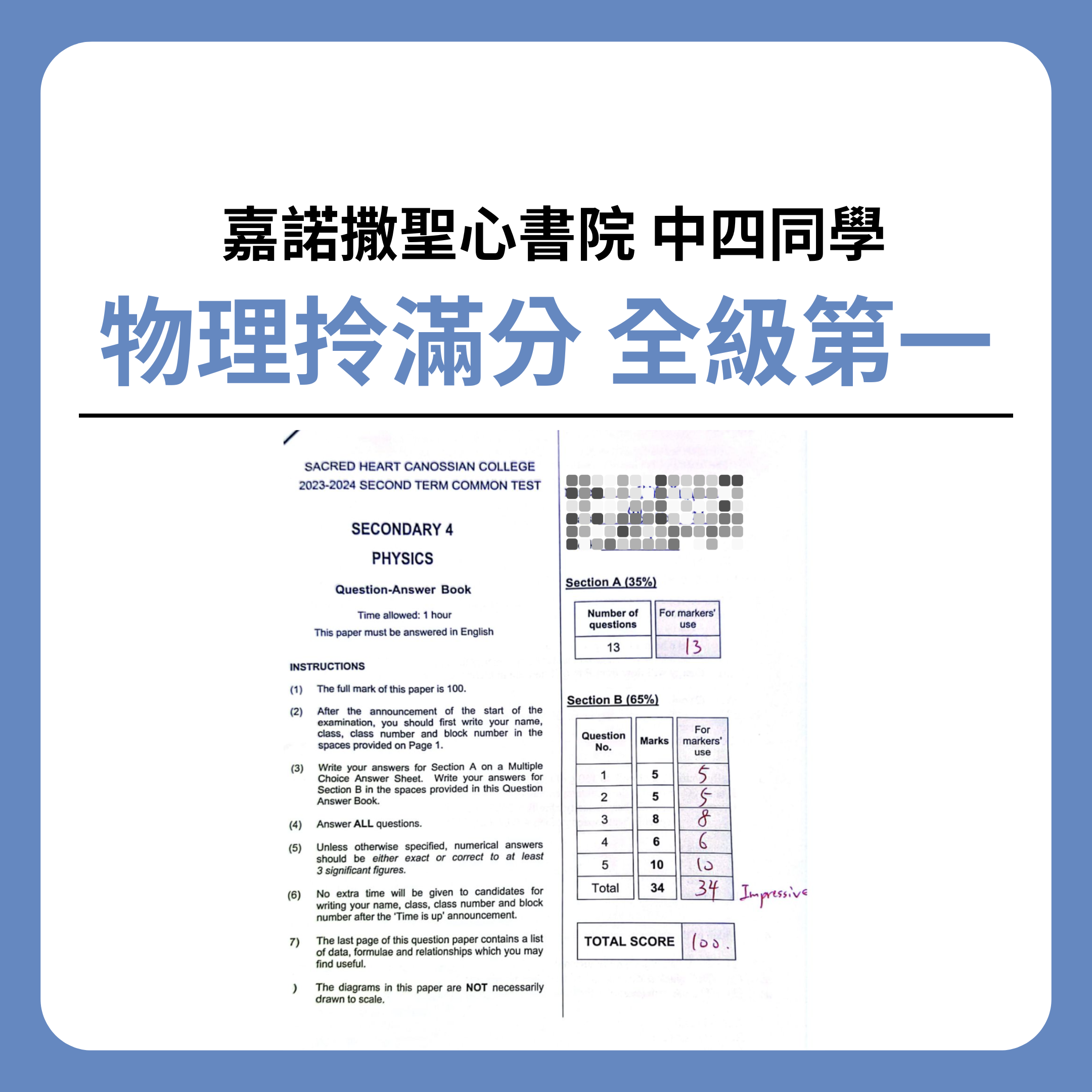 過百學生見證 你的物理補習首選